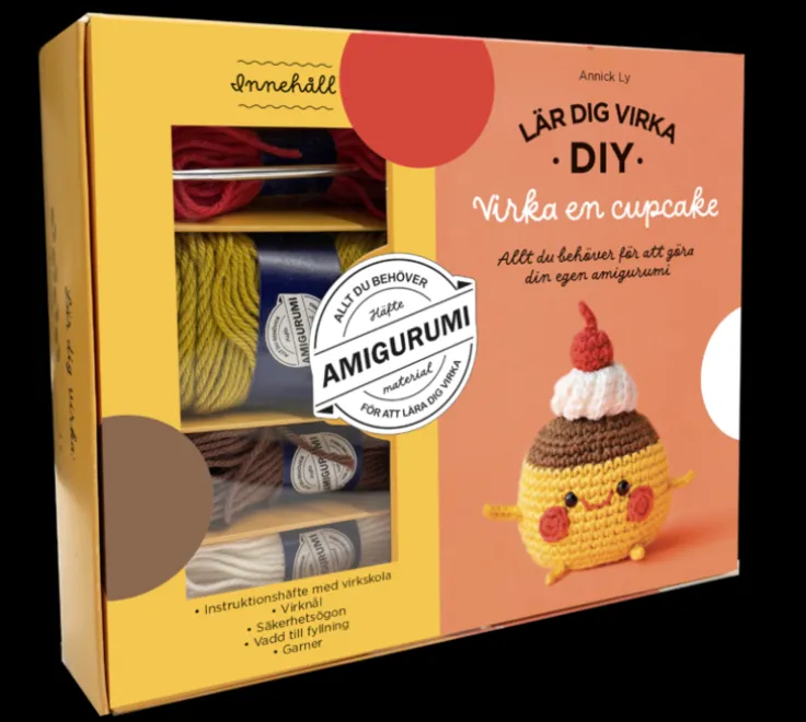 Den medföljande boken ger dig en liten kurs i virkning, och innehåller mönstret till en gullig amigurumi-cupcake. Virkning, garn, stoppning och ögon ingår. Du får en virknål och material tillsammans med boken som på ett tydligt och pedagogiskt sätt med färgfoton visar grunderna i virkning samt hur du virkar en gullig cupcake.