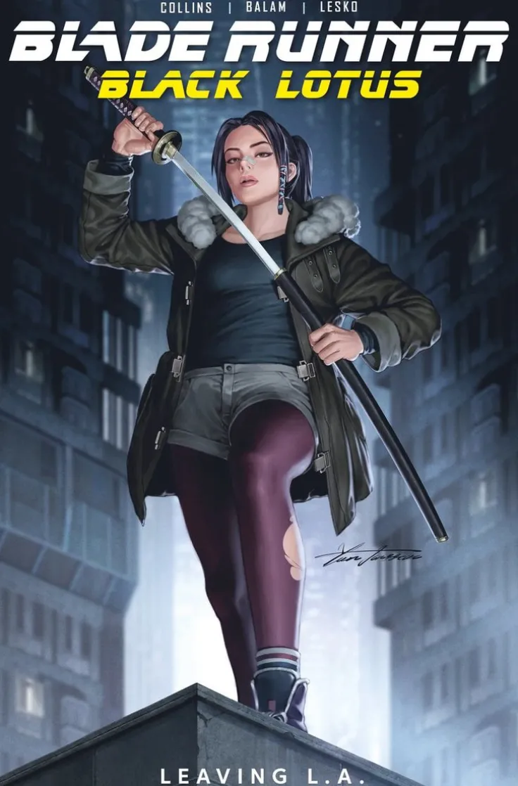 Based on the all-new acclaimed Anime series: Black Lotus. This officially sanctioned graphic novel heralds an all-new saga in the Blade Runner franchise, one whose ramifications will ripple throughout the Blade Runner universe. It’s 2032, just after the events seen in ”Blade Runner: Black Lotus” and Elle, aka The Black Lotus Killer, is still wanted for murder by the LAPD, as well as even more powerful and dangerous interests in Los Angeles. Escaping Los Angeles on a homebuilt Spinner-bike, Elle heads out for parts unknown like a cyberpunk Easy Rider, hoping to forge a new life free of the cruelty, violence and false memories that have so far defined and guided her reality and find answers to her mysterious origin. After she is bushwacked by bandits, Elle finds herself waylaid in the desert settlement of Frack Town, her Spinner Bike seriously damaged and in desperate need of repair. Still trying to adjust to a world that feels alien and unreal to her and eager to turn her back on her own violent tendencies, Elle finds herself drawn into a deadly dispute between two warring factions who struggle to co-exist in the desolate industrial town. On one hand there’s the Boss Barnes, the de facto mayor and leader of the Frackers, and on the others there’s Miguel leader of a ”restorationist” colony trying to turn its back on the evils that have brought the world to environmental. Their struggle will bring Elle face to face with the one person she is trying to escape from. Nia Wallace.