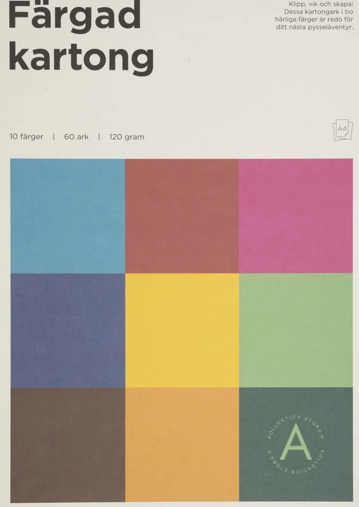 Låt kreativiteten flöda med detta färgglada kartongblock i A4 format! Innehåller 30 ark i 10 olika nyanser – perfekt för pyssel, kort, scrapbooking och andra kreativa projekt. Kartongarken är limmade och enkla att riva av när skaparlusten slår in. 120 g papper60 arkMiljömärkt Den Blå ängelnMåla, rita, pyssla och skapa! ingår i Akademibokhandelns egen kollektion – Kollektion Stora A.