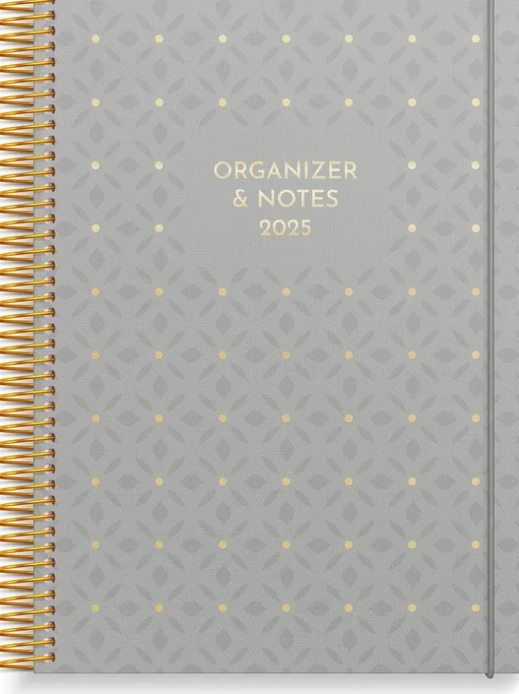 En kalender och anteckningsbok i ett! Med Organizer & Notes får du gott om utrymme att planera varje dag. Första halvan innehåller kalendarium och andra halvan innehåller linjerade sidor för din planering, kom ihåg, listor och anteckningar. Med hjälp av de flyttbara flikarna förflyttar du dig snabbt och smidigt mellan veckoplanering och anteckningar. När du har allt på samma ställe minskar stressen och du kan lägga fokus på annat.Kalender 2025 från Burde. Format: A5. Layout: Liggande. Vecka/uppslag. Kalendarium: 2024-12-09 – 2026-01-04. Omslag: Kartong med struktur. Spiralbunden. Detaljer: Gummiband. Flyttbara markörer. Innehåll: Årsöversikter, årsplaner. Antal sidor: 256. Miljöinformation: FSC®.