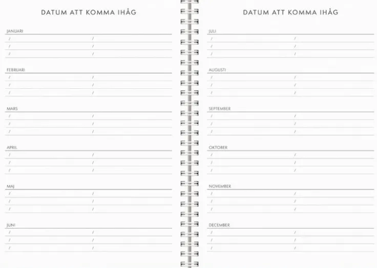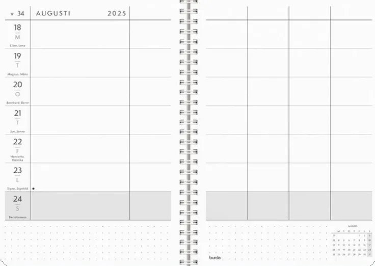 - Layout: Vecka/Uppslag