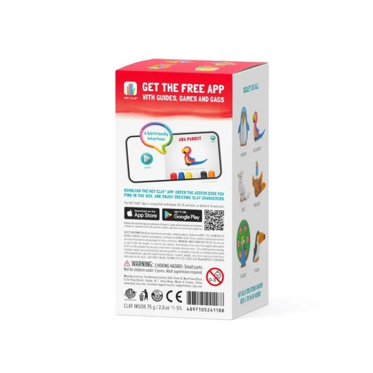 Ett riktigt kul och kreativt set med lufttorkande lera för att skapa en rolig Ara papegoja av som du sen kan leka med. Detta set innehåller 5 burkar lätt, mjuk, elastisk och lufttorkande lera i klara livfulla färger som går att blanda ihop till nya nyanser och du kan få hjälp i skapandet av en gratis barnvänlig app med interaktiva video-guider som har enkla steg-för-steg instruktioner (på engelska) för hur man skulpterar många olika karaktärer. Du låser upp beskrivningen för papegojan med en kod som finns inuti paketet. Låt figuren lufttorka i 24 timmar så kan du sen leka med den precis som en leksak eller dela bilder på din skapelse med dina vänner. När du har fått kläm på de enkla grundläggande teknikerna får du säkert inspiration till att skapa dina helt egna figurer eller scener. Förvara den lera som inte används i lufttäta förpackningar så torkar den inte ut. Innehåll: 5 burkar lufttorkande lera (totalt ca 75 g lera i 6 färger) samt ett informationsblad med bilder på fågeln, de olika stegen som krävs för att skulptera den, en länk till där ni kan hämta appen och koden som låser upp appens guide för hur man skapar papegojan.