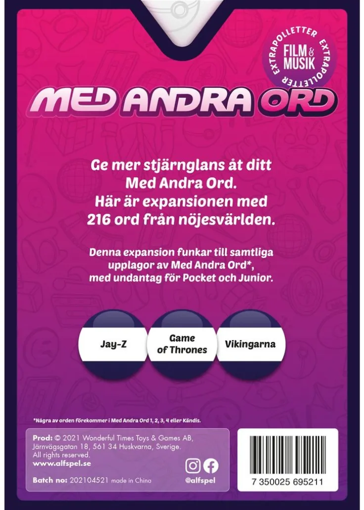 Ge mer stjärnglans åt ditt Med Andra Ord. Här är expansionen med 216 ord från film och musikvärlden.