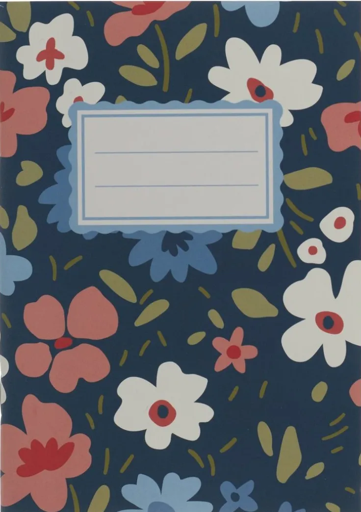 Ett somrigt och stilrent skrivhäfte i A6-format prytt med små vita, rosa och blå blommor på mörkblå bakgrund. Det mjuka skrivhäftet har 40 linjerade blad som ger gott om plats för tankar, listor och anteckningar. Blocket är FSC-märkt – ett hållbart val för dig och vår planet.FSC-certifierat papper40 linjerade sidorA6-formatEtt somrigt skrivhäfte för livets alla anteckningar. Kollegieblocket ingår i Akademibokhandelns egen kollektion – Kollektion Stora A.
