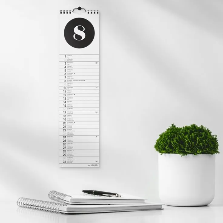Väggkalender 2026 från Burde. Format: 110×430 mm. Layout: Månad/blad. Kalendarium: 2026-01-01 – 2026-12-31. Spiralbunden. Innehåll: Flaggdagar, helgdagar/aftnar, månfaser, namnsdagar, temadagar/händelser,. Antal sidor: 12. Miljöinformation: FSC®.